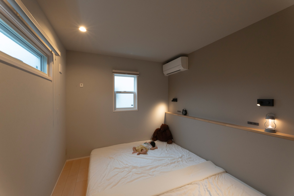 主寝室はあえて1階に設計、歳をとって子どもが巣立ち、また夫婦二人の生活になると考えたときに、将来1階だけで生活が完結するのはとてもありがたい。