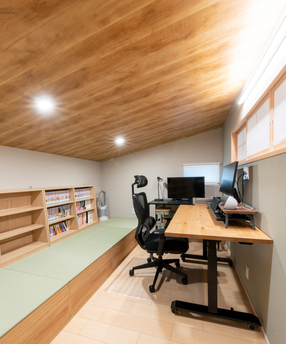 ご主人お気に入りの小部屋は、あえて天井を下げた空間にして落ち着くように。
